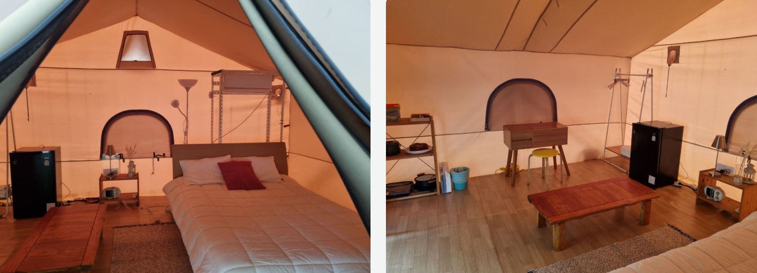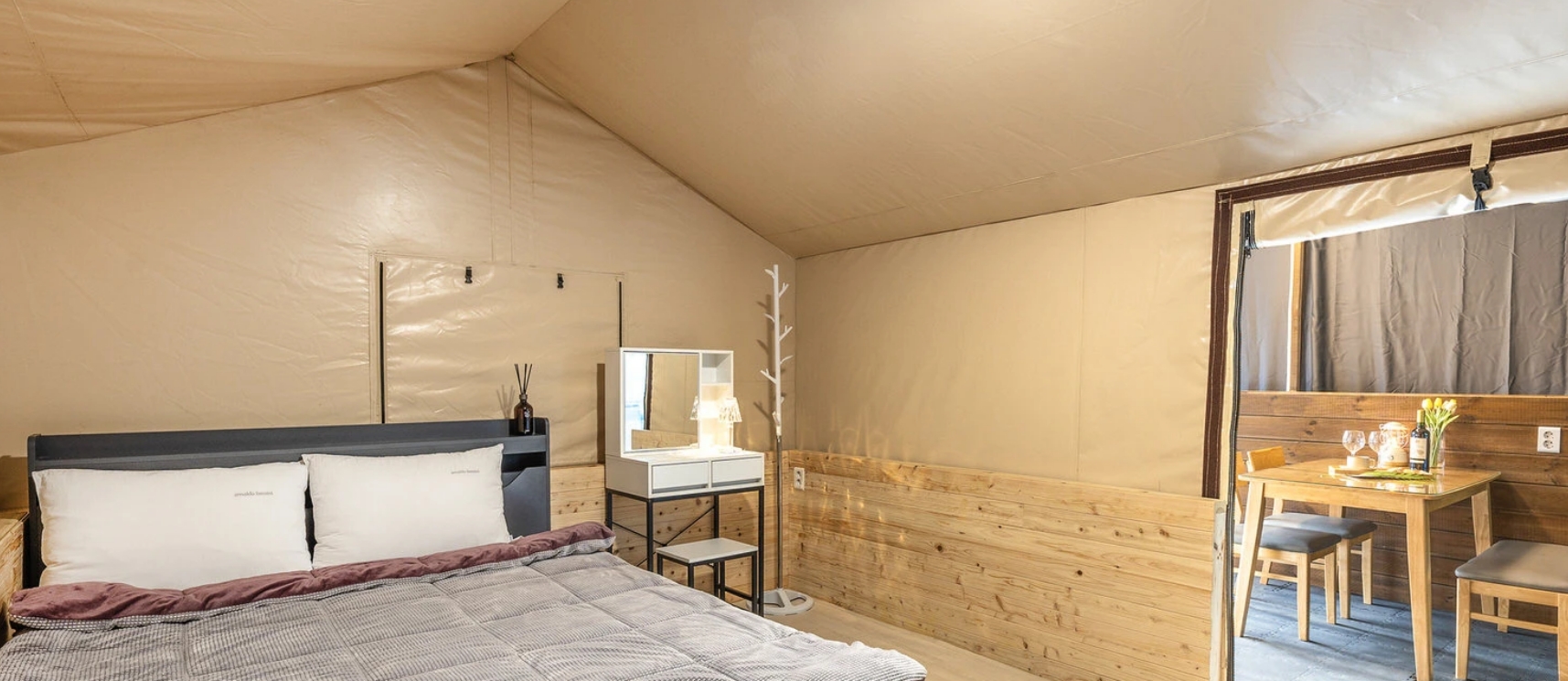 👶 키즈 프렌들리: 침대룸 + 글램핑룸 구성, 가족 단위 이용 적합 (공간 여유)